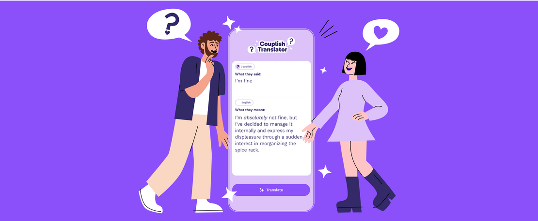 NEW YORK – Aug 2025 – Ever wished your partner came with subtitles? Now they do. The new Couplish Translator is an AI-powered tool that decodes the unspoken language of relationships, revealing the real meaning behind everyday phrases like “It’s fine,” “Do whatever you want,” and “We’ll see.”